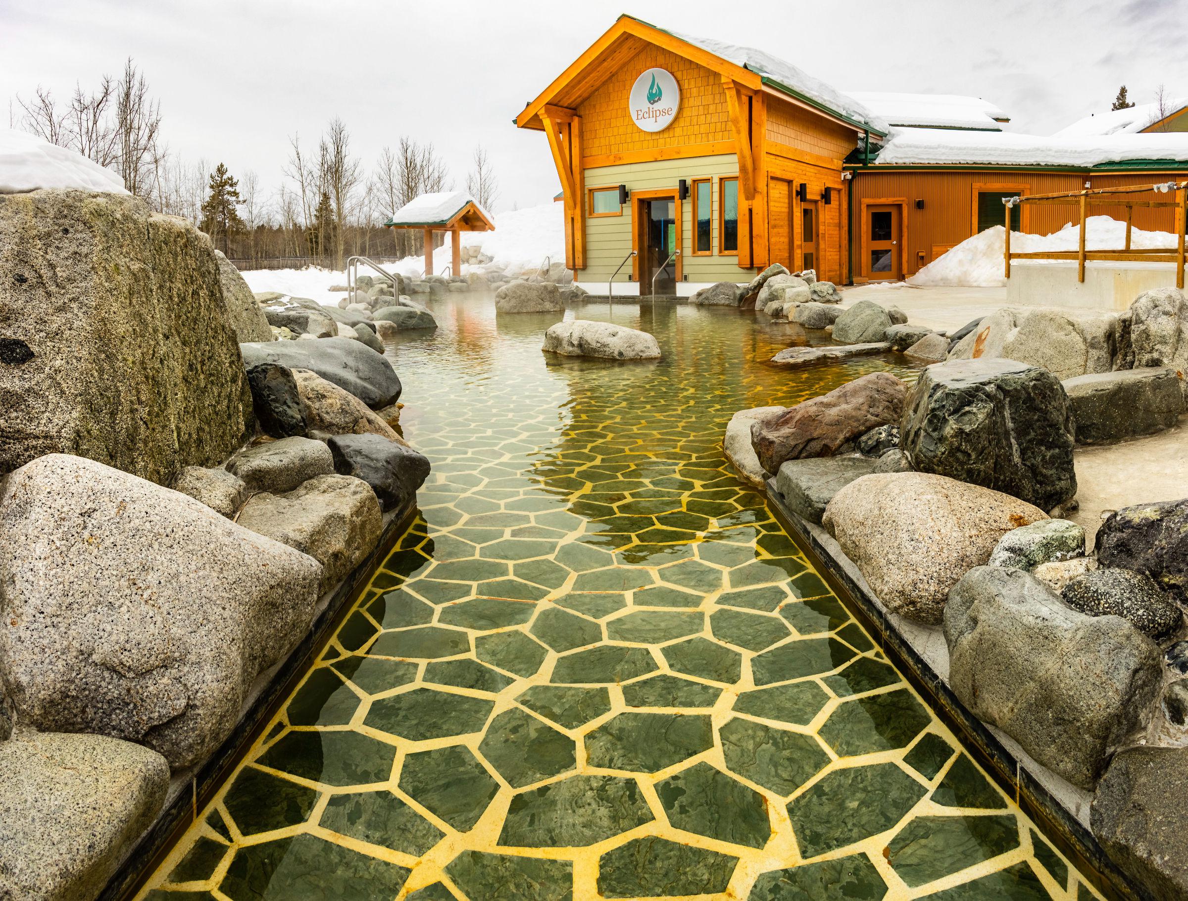 The outdoor hot springs pool provides a warm sanctuary amid the cold weather and is a must-do activity while visiting Whitehorse!